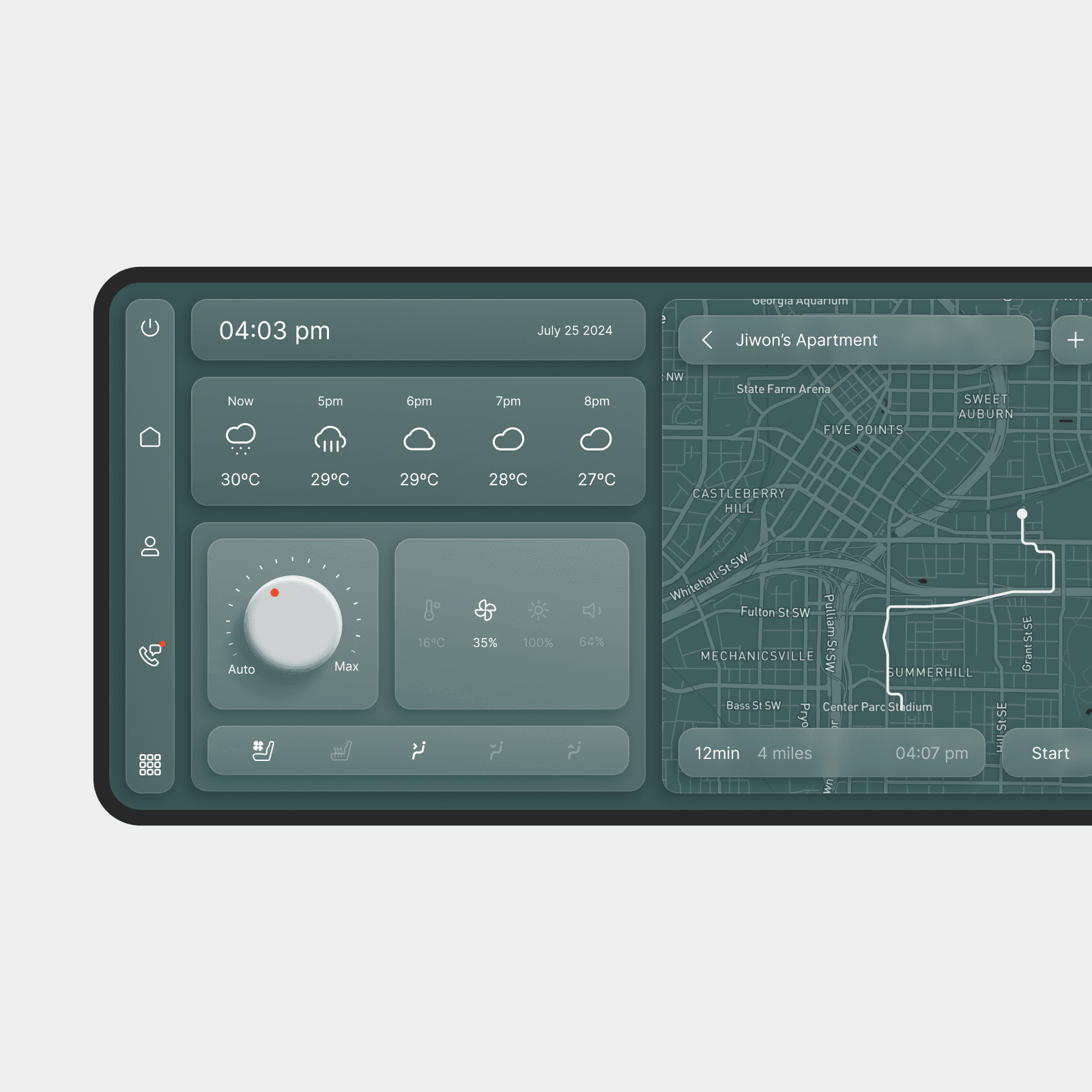UI design for the onboard screens of the TYR concept electric vehicle, part of a rare, large-scale project conducted by SCAD’s Industrial Design department once every ten years.